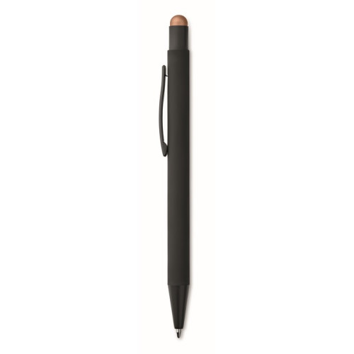 Pix cu stylus din bambus, Pix din bambus cu buton, cu capat tactil, din bambus si crom lucios. Pix d..