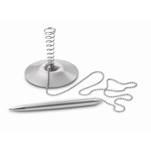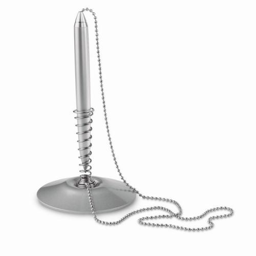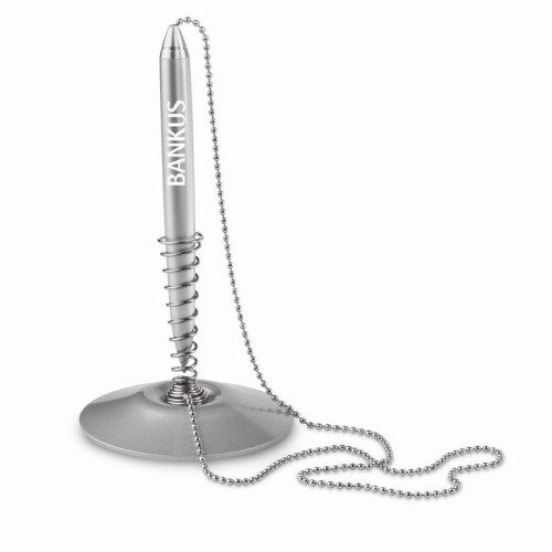 Tags: Pix cu baza suport, Pix cu corp din aluminiu si snur metalic, pe suport metalic, Mina albastra,