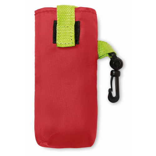 Sacosa cumparaturipliabila, Sacosa pentru cumparaturi, pliabila, intr-o borseta prevazuta cu carabina din plastic. Poliester 190T.